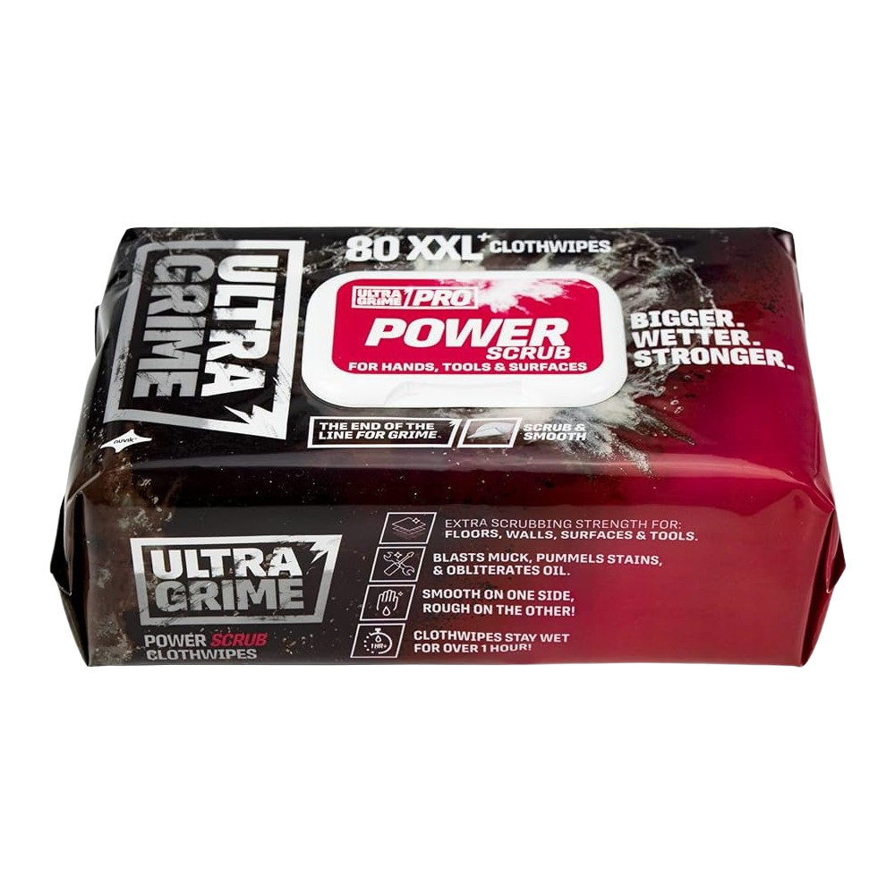 Whether on a construction site, in a workshop, or out in the field, UltraGrime Power Scrub Wipes give you the scrubbing power of a brush with the convenience of a wipe.